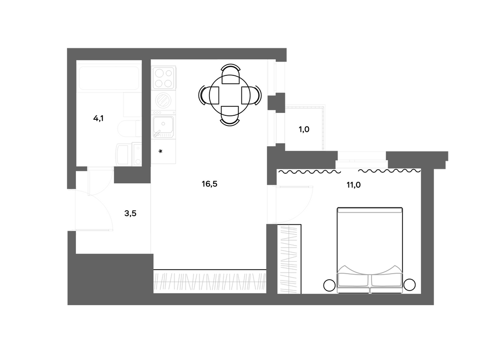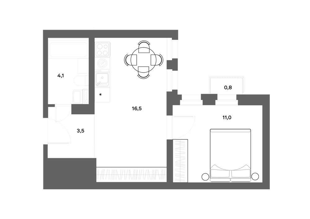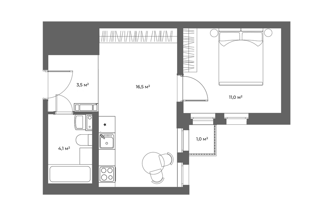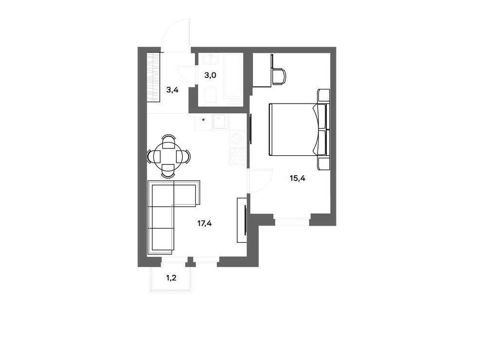 1-комнатная  39.2 м2