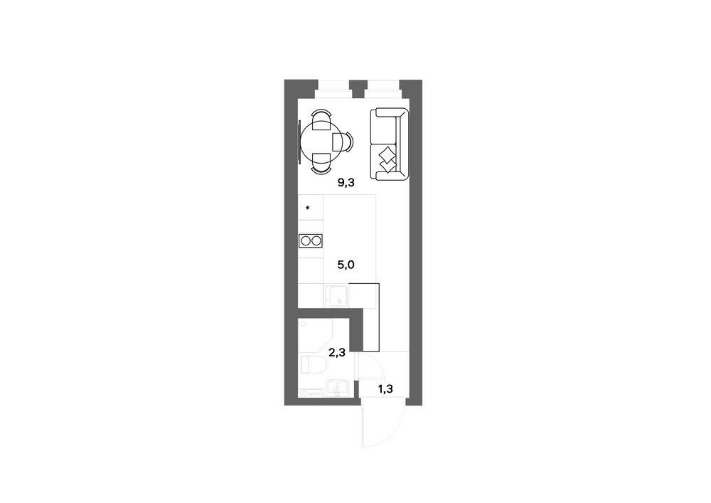 Студия  17.9 м2