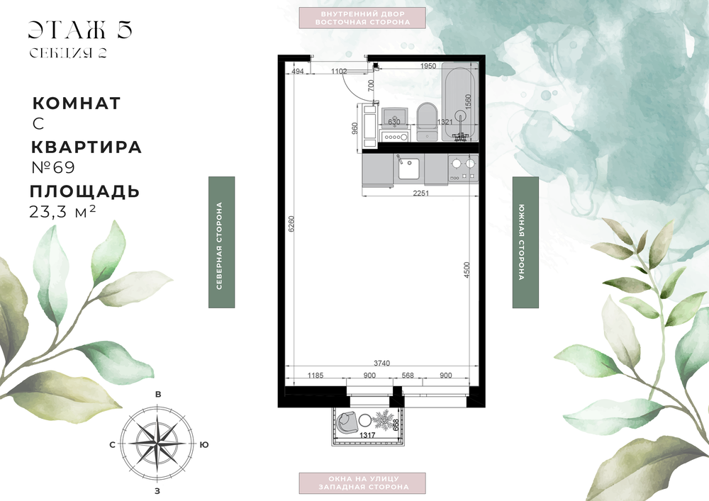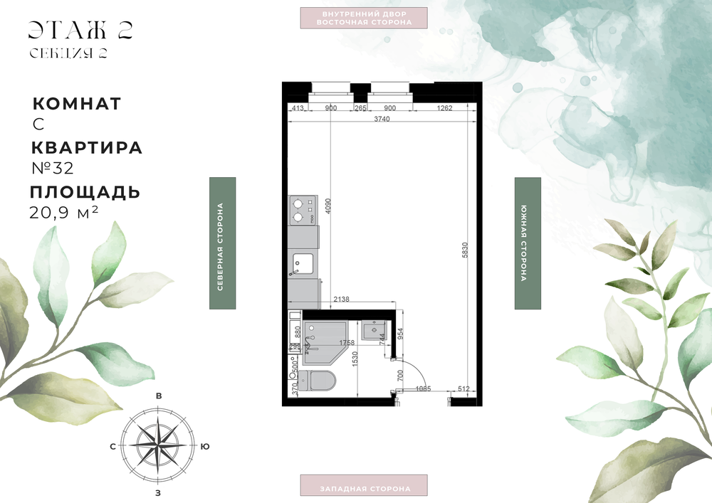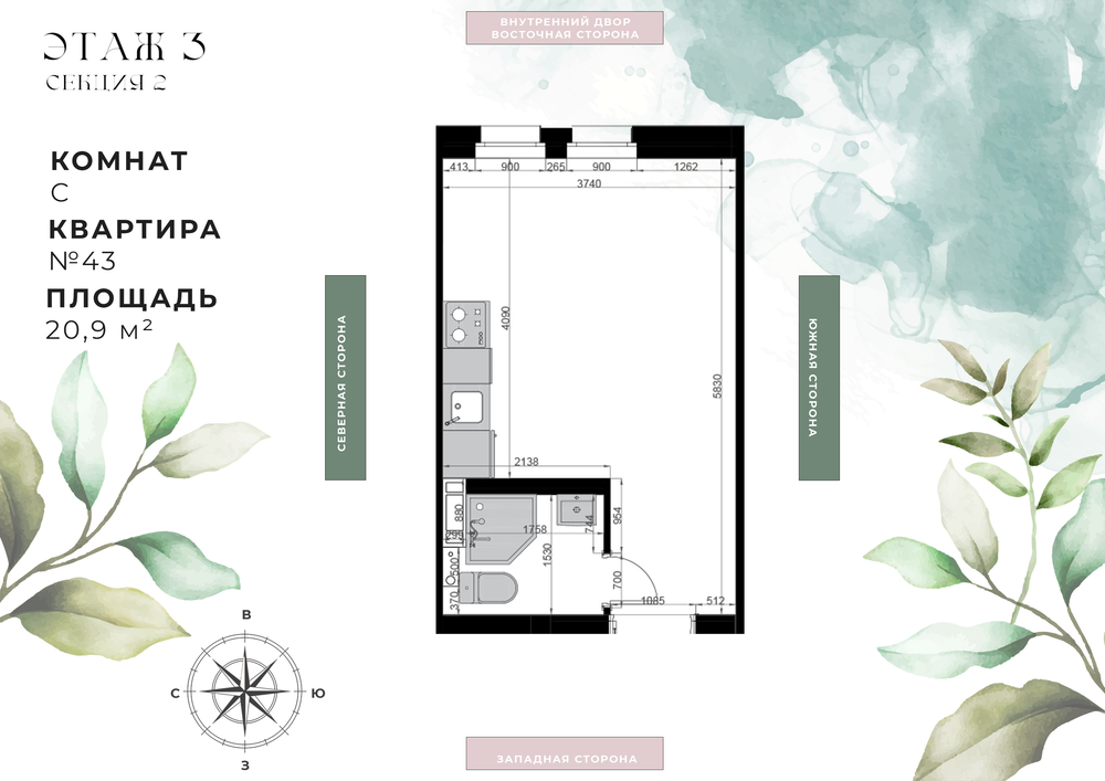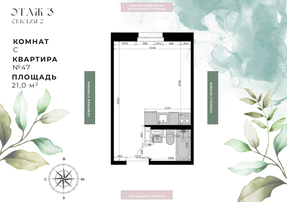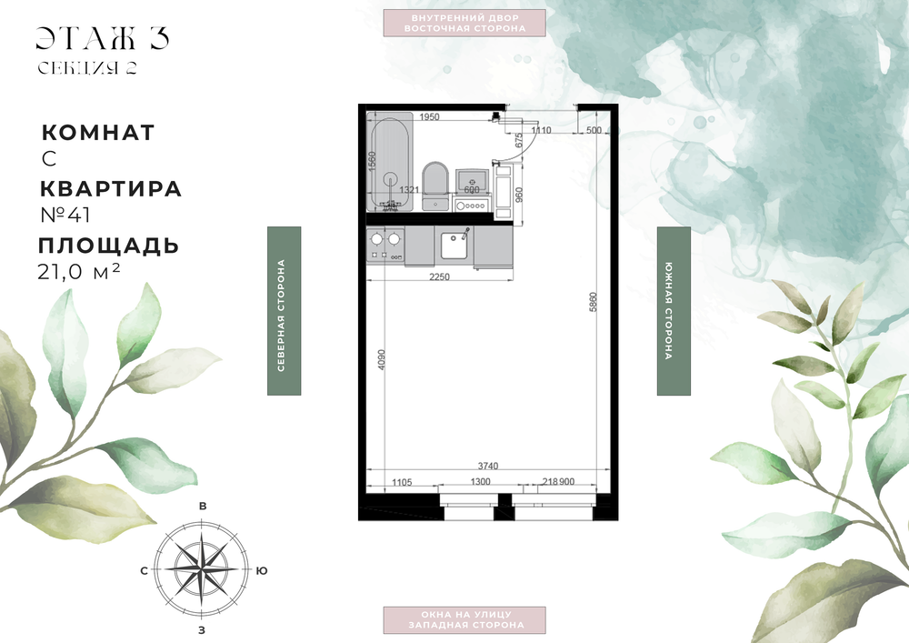 Студия  21 м2