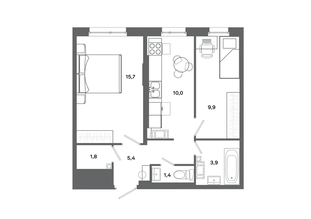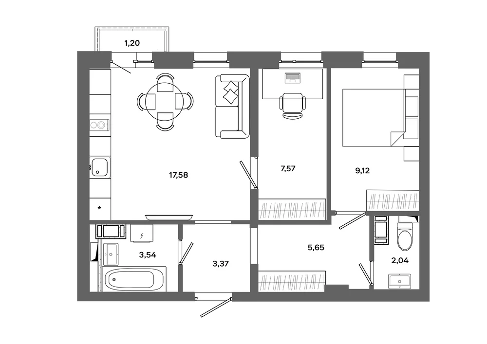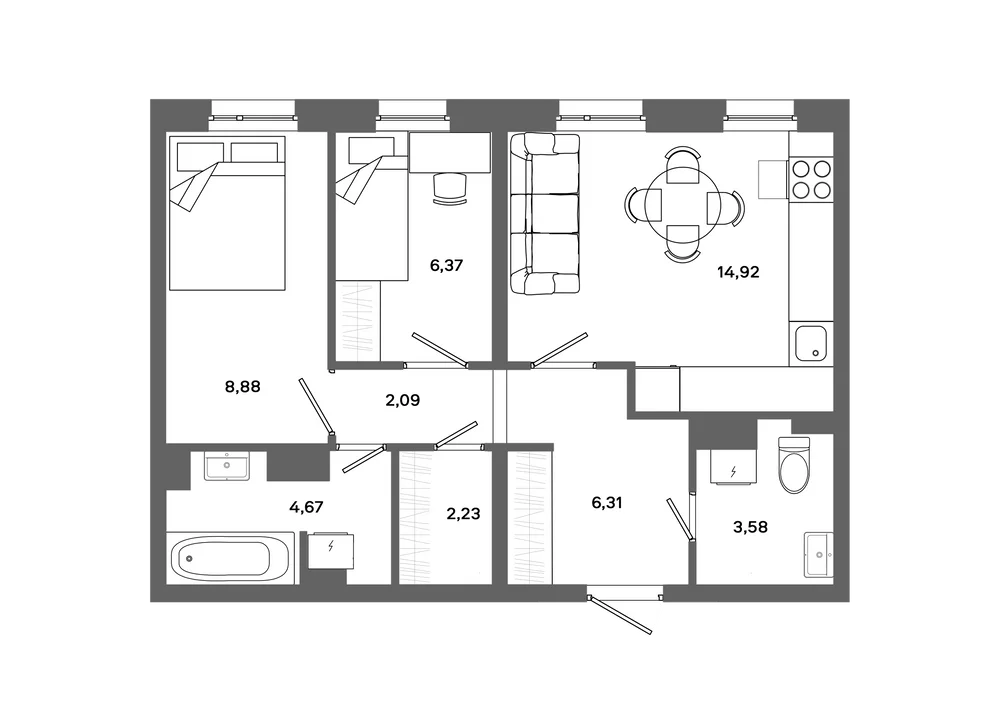2-комнатная 53.27 м2