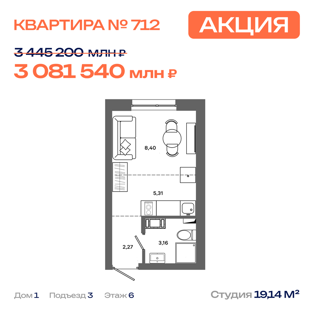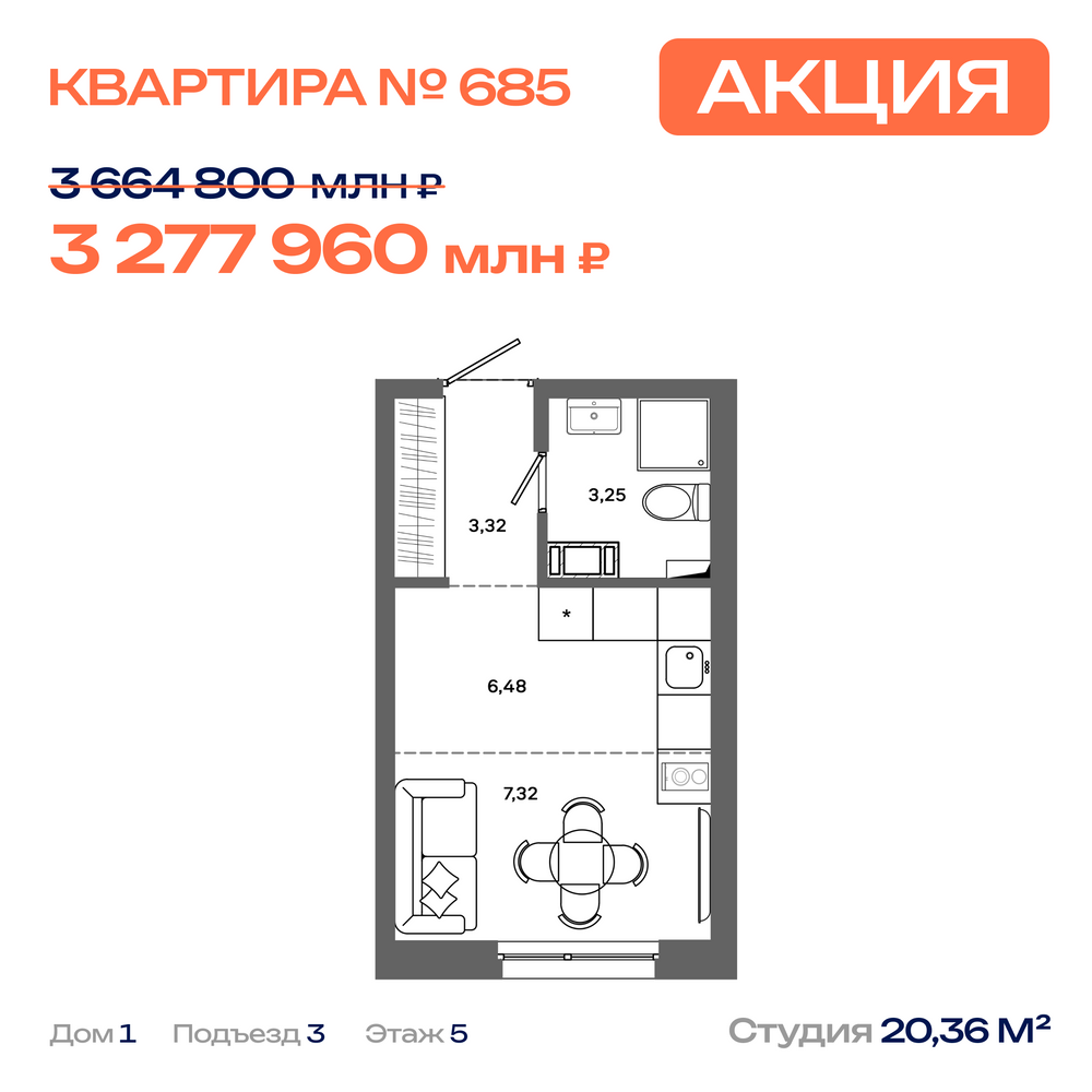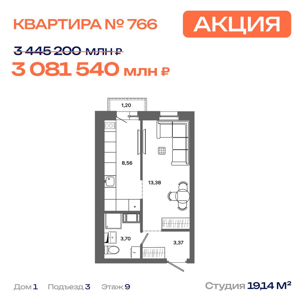 Студия 21.11 м2