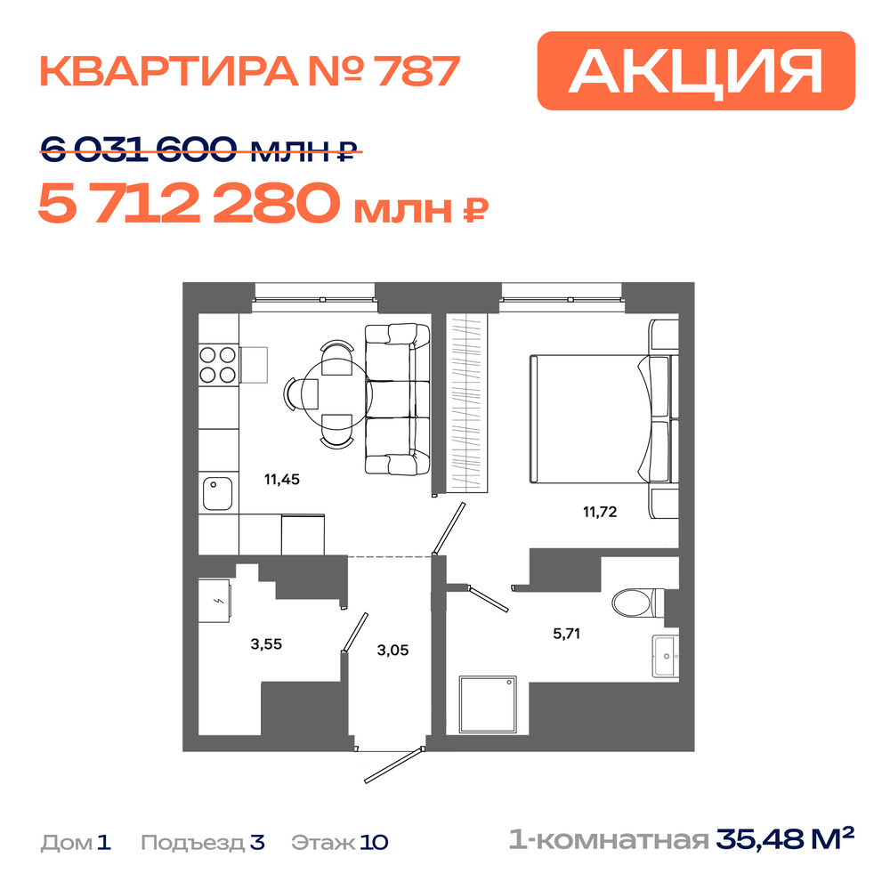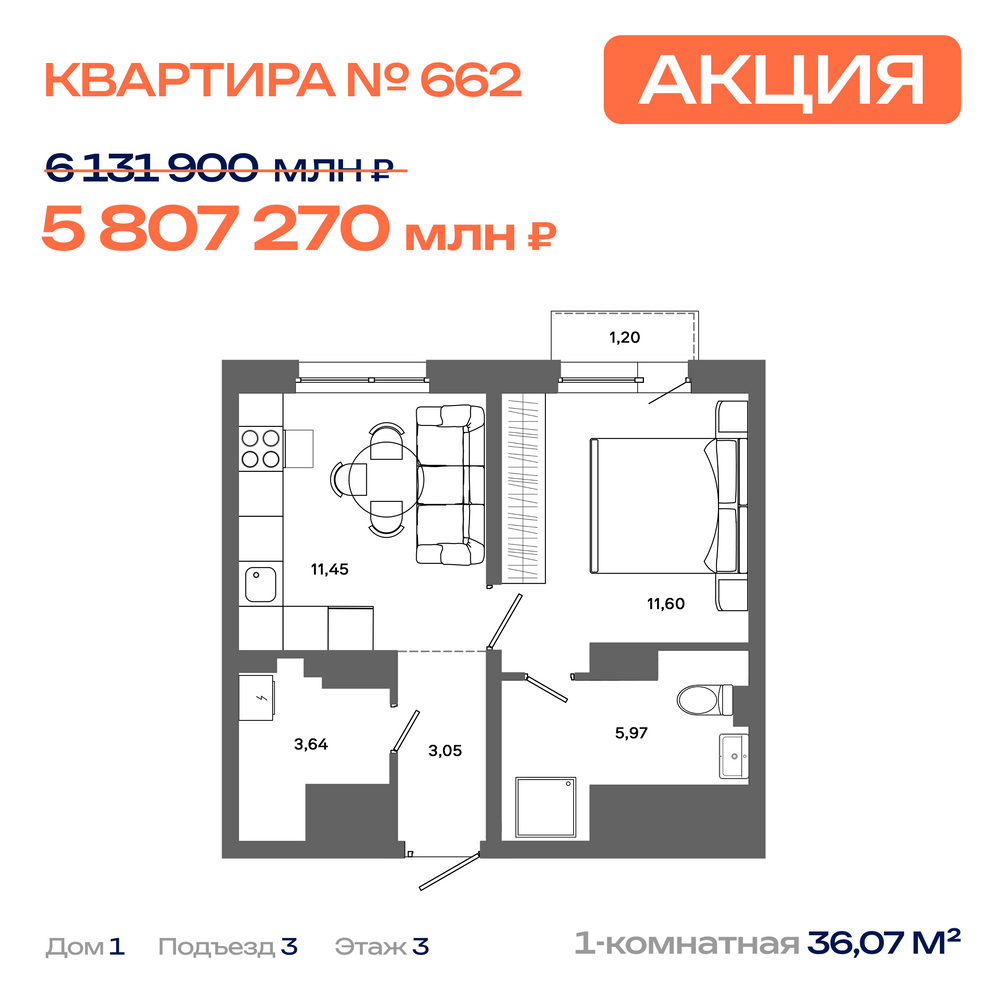 Дом №1, Секция 3, Этаж 11