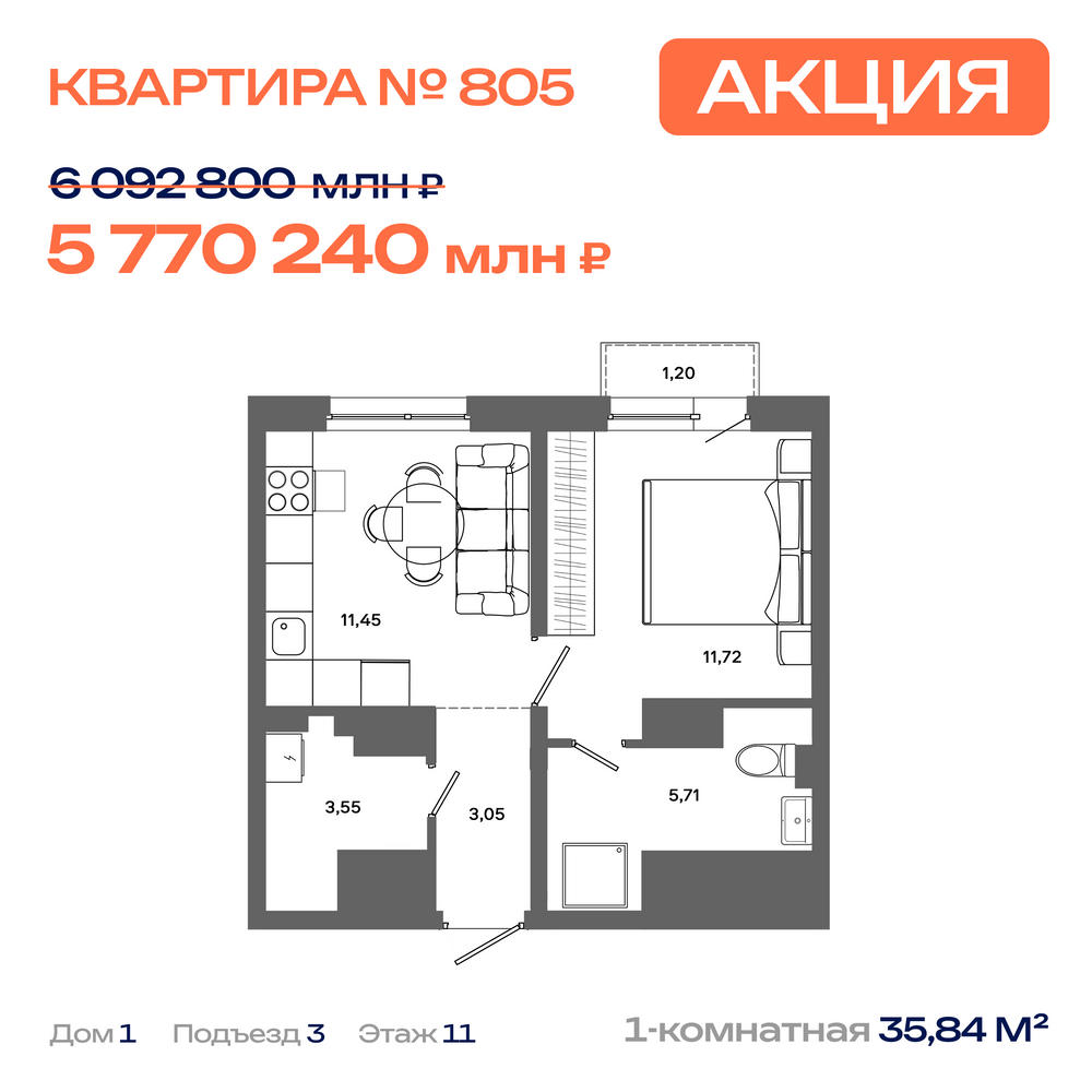 Дом №1, Секция 1, Этаж 11