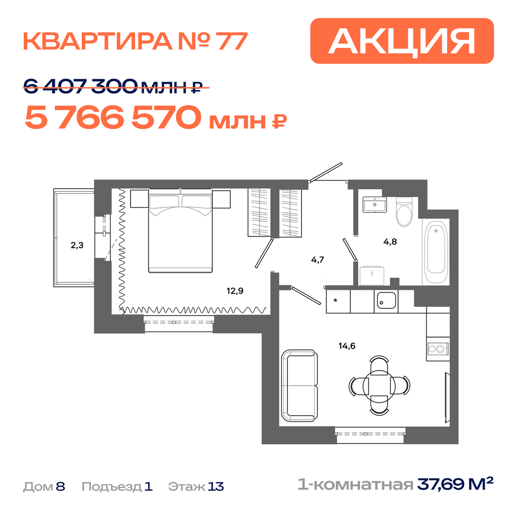 Дом № 8, Секция 1, Этаж 13