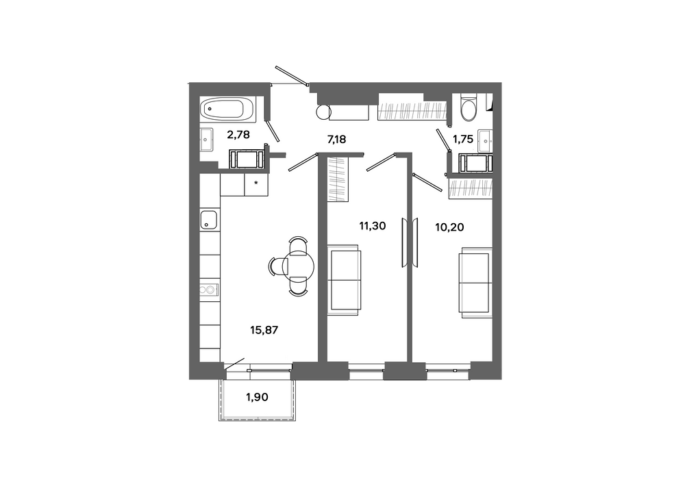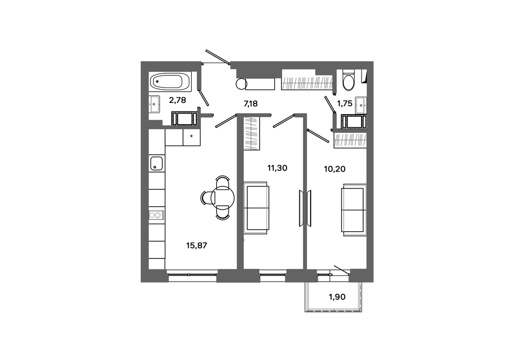 2-комнатная 54 м