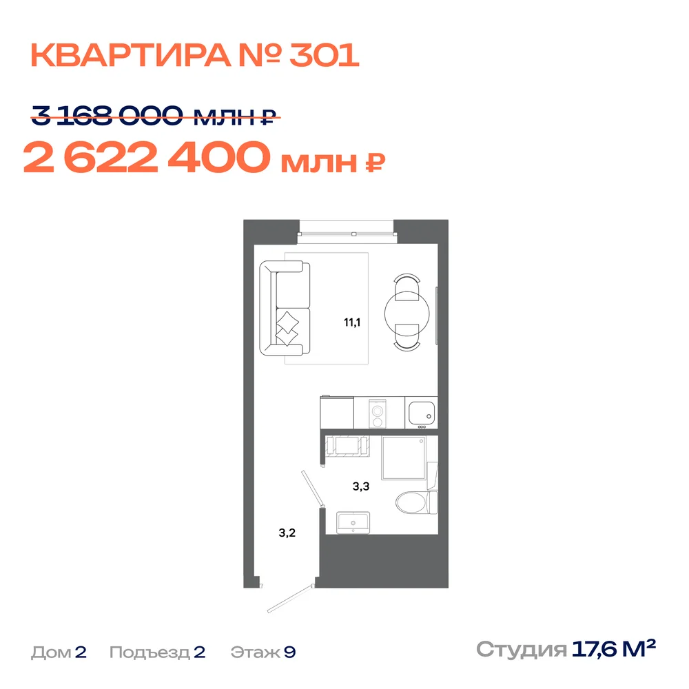 Дом №2, Секция 2, Этаж 9