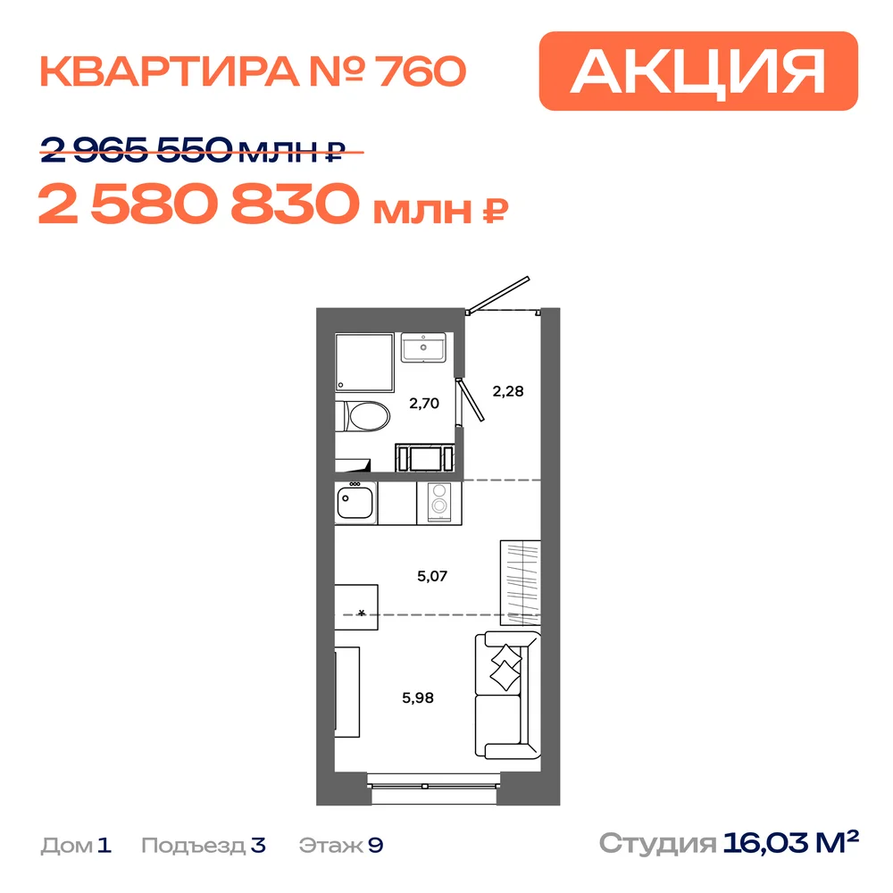 Дом №1, Секция 3, Этаж 9