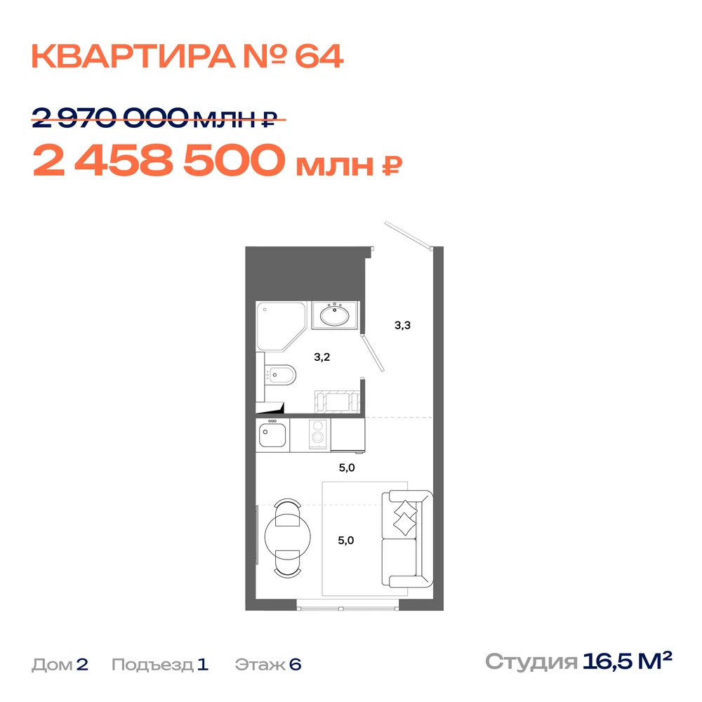 Студия 16.22 м