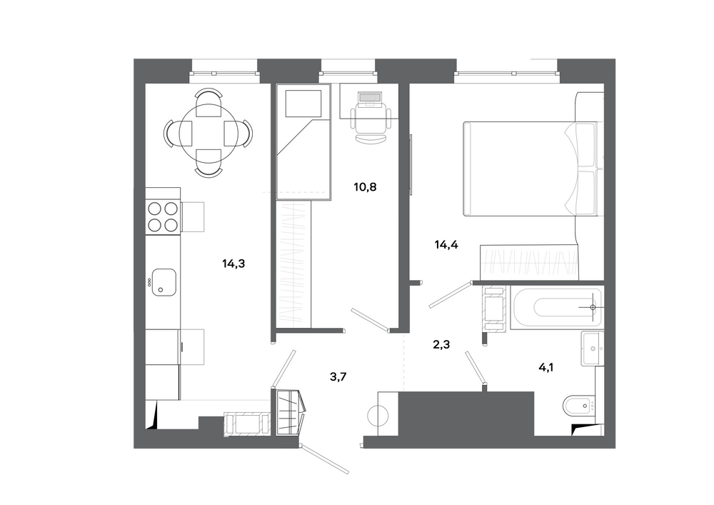 1-комнатная 51.2 м