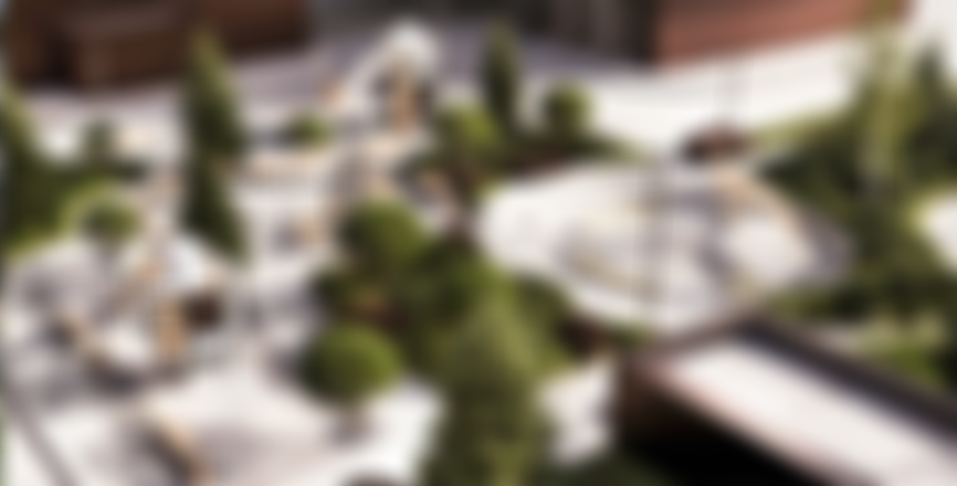 Через территорию проходит декоративная «река» из архитектурного бетона — элемент, который интерпретирует природу в урбанистическом ключе.